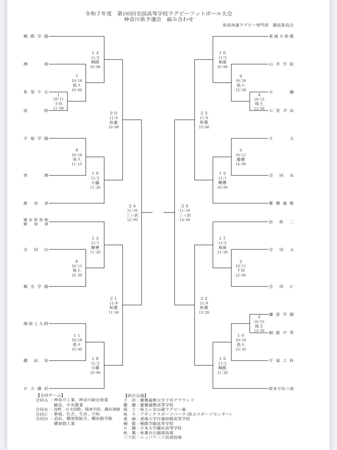 令和7年度 第105回全国高等学校ラグビーフットボール大会 神奈川県予選がいよいよ開幕いたします。